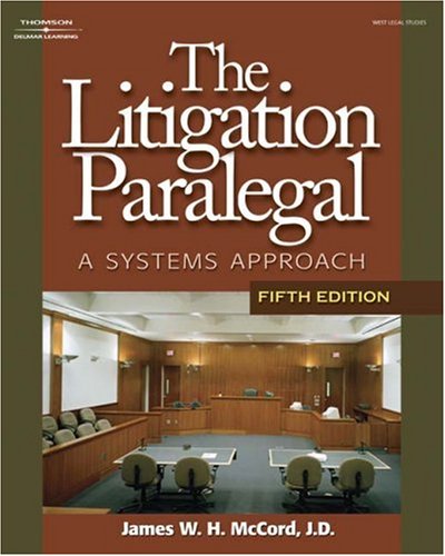 The Litigation Paralegal: A Systems Approach, fifth edition is an exceptional classroom text as well as a valuable post-classroom, on-the-job resource. The text and bundled workbook offer instructors a flexible course plan that guides the student through each step and major task of the litigation process. Educators and students alike will benefit from the clear presentation of material, the emphasis on ethics, the extensive coverage of electronic discovery and filing, as well as features such as the medical guide, numerous checklists, provocative quotations, and a wealth of practical assignments set in the context of one or more litigation cases. .