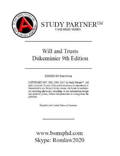 Read Casebriefs For the casebook titled Wills, Trusts, and Estates, 9th Dukeminier, Sitkoff ISBN 13: 9781454824572, ISBN 10:1454824573 complete books online for free. Reading Casebriefs For the casebook titled Wills, Trusts, and Estates, 9th Dukeminier, Sitkoff ISBN 13: 9781454824572, ISBN 10:1454824573 full free books online without downloading.